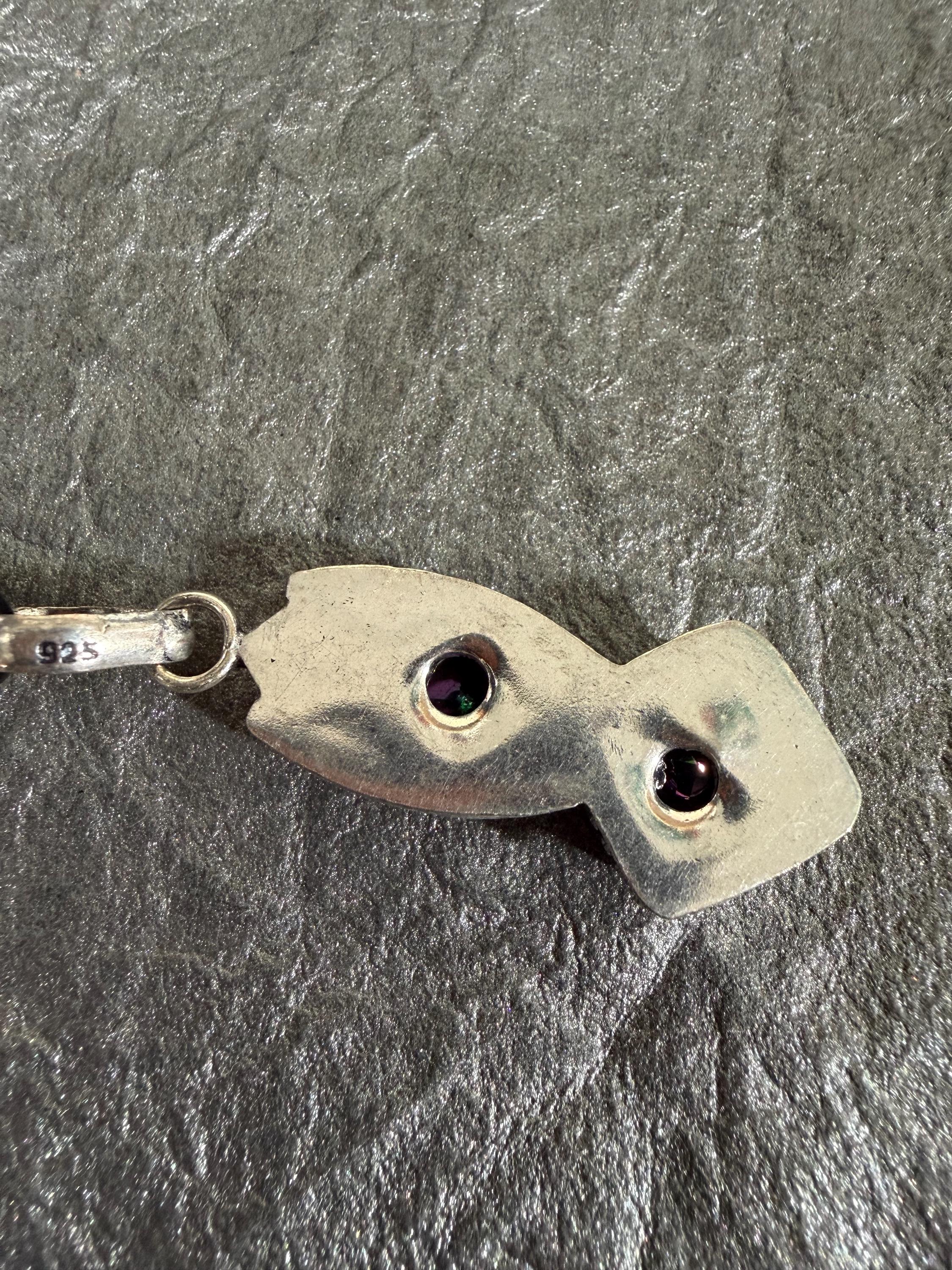 This Aura Quartz pendant houses a Psychic Vampire. He will feed from ambient energy in your environment. He is a master of energy work and can help balance your chakras. You may experience cold tingling touches, feeling someone staring at you in the darkness, see orbs, electronics disturbances and hearing footsteps- he is very active especially at dawn and dusk.
